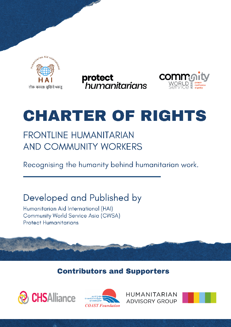 The Charter of Rights for Frontline Humanitarian and Community Workers is a voluntary commitment framework designed to strengthen the dignity, safety, and wellbeing of those who deliver aid closest to crises. Rooted in global evidence and field realities, the Charter outlines practical, context-sensitive commitments across safety, compensation, mental health, accountability, and local leadership. It recognises diverse operational environments and promotes progressive realisation rather than rigid compliance. By endorsing the Charter, organisations affirm their responsibility to protect and support frontline workers, enhance humanitarian effectiveness, and advance locally led action. The Charter serves as an advocacy tool and a shared commitment to ethical, equitable humanitarian practice.